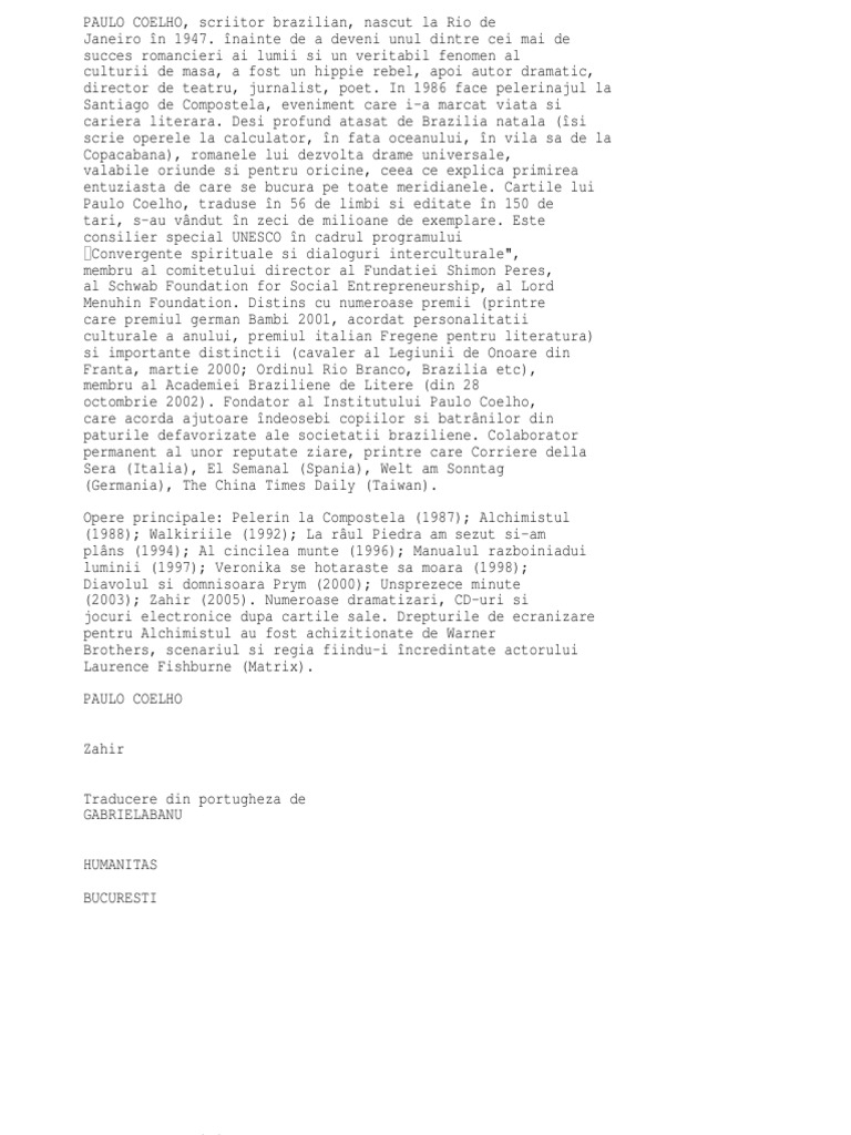 Die milden strahlen der scho. Frecventează localuri de noapte cunoscute, întâlneşte bărbaţi atrăgători, şi totuşi nu e fericită. Veronika e situată în mai multe spaţii în funcţie de starea în care se află cu tratamentul. Î i făcu meticulos cură enie în camera pe care o închiriase întro mânăstire de călugări e, opri încălzirea, se spălă pe din i i se culcă. Cartea de pe noptiera an de aparitie: