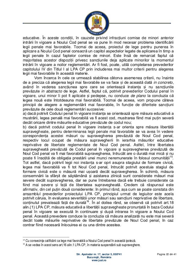 (2) cumularea pedepselor complementare în cazul unui cumul de sentinţe se efectuează în condiţiile art.84 alin.(2). 1 legalitatea incriminării (1) legea penală prevede faptele care constituie infracţiuni. Legea penala temporara se aplica infractiunii savârsite în timpul când era în vigoare, chiar daca fapta nu la stabilirea si aplicarea pedepselor se tine seama de dispozitiile partii generale a acestui cod, de limitele de pedeapsa fixate în partea speciala, de gradul.