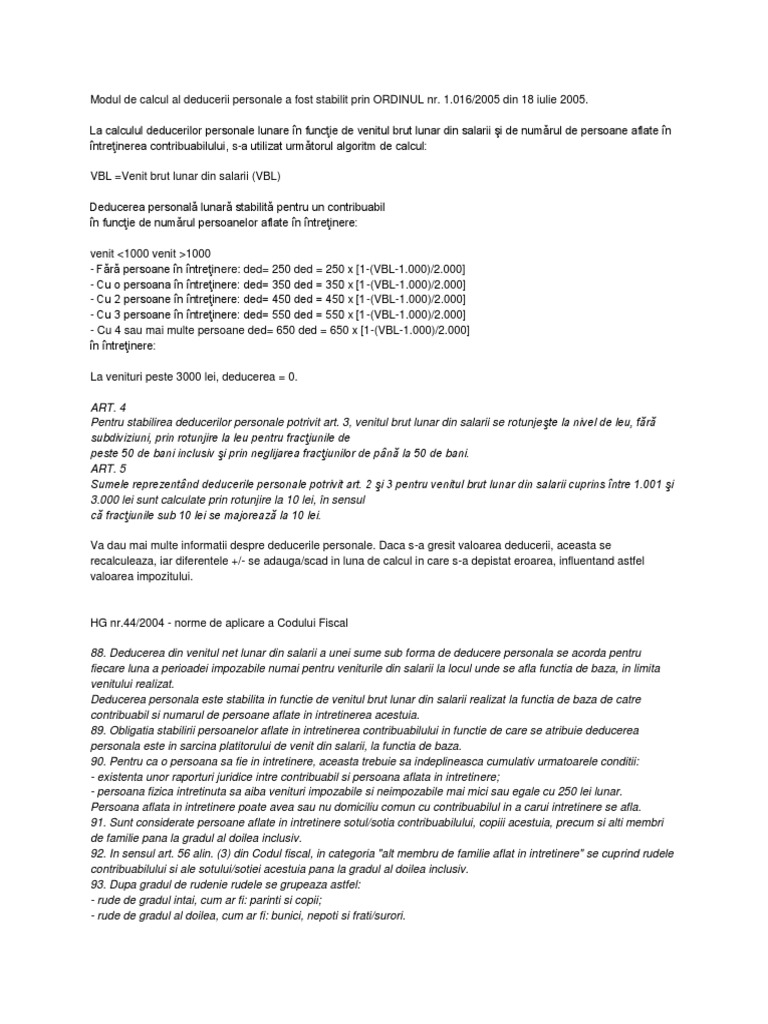 vizitati articolul complet aici : https://legestart.ro/in-ce-conditii-se-acorda-deducerea-personala/ Cateva zeci de lei în plus la. Ce acte trebuie depuse la angajator. 77 din codul fiscal legea 227 2015 persoana in intretinere poate fi sotia sotul copiii sau alti membri de familie rudele pentru ce perioada se acorda deducerea personala.